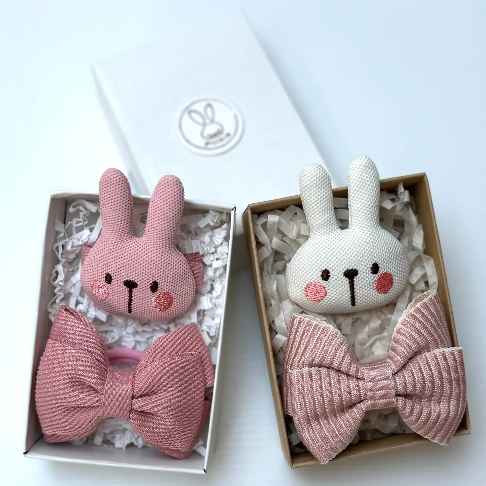 Labai mielas komplektukas, tinkantis tiek kasdienai, tiek vėlykiniam laikotarpiui. Zuikutis turi sagučio pagrindą, kuris turi mini dantukus, taip neleisdamas greitai išslysti iš plaukučių. Kaspinėlio pagrindą sudaro plaukų gumelė, kuri tiks tiek plonų plaukcių, tiek storesnių plaukučių turėtojoms.